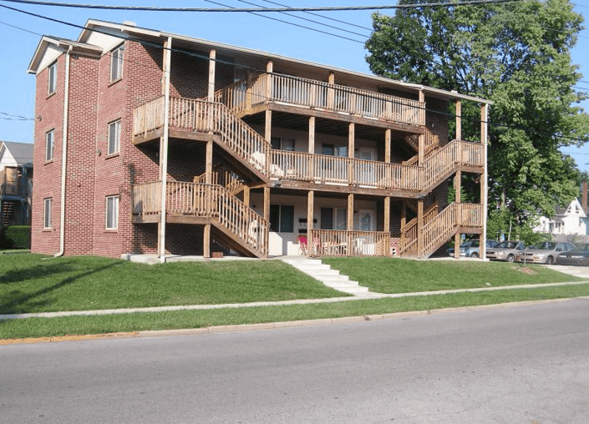 This apartment building is located at the corner of Rose Lane and Aylesford Place, directly across the street from the Sigma Nu Fraternity House and just steps away from UK’s Campus and the W.T. Young Library.  The building was built completely brand new in 2004.  This apartment is on the second floor and features real wood floors and stained trim throughout with ceramic tile in the bathroom/laundry area. There is an extra-large living room with open concept kitchen and bar counter.  Both bedrooms are large and have wide closets.  There are extra closets in the back bedroom and in the living room.  The kitchen has a smooth-top range, dishwasher and refrigerator with glass shelves and ice maker. The unit has central heating/A/C.  The entire building features smoke alarms, fire separations between units and a sprinkler system throughout for added safety. The property also features a large, well-lit off-street parking lot and a front patio area for resident use.
