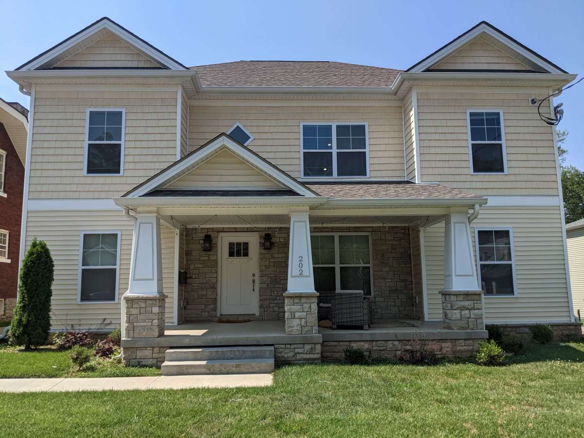 This new construction duplex was completed in 2018 and features two nearly identical 4BR/4BA apartments, with Apartment 1 on the first floor and Apartment 2 on the second floor. The common living space is an open concept design, with the kitchen flowing straight into the living room area. Apt. 2 also features vaulted ceilings in the common areas, making the place feel huge and bright. The kitchen features ample countertop space, an elevated bar top, new all-electric stainless-steel appliances, and a laundry closet. Each bedroom provides 140 sq. ft. of space with its own ensuite bathroom. Beautiful hardwood flooring can be found throughout, with the exception of ceramic tile in the bathrooms. New, high-efficiency all-electric central heating and air conditioning units have been installed for comfort and low energy bills. This second-floor unit has a large rear deck area for entertaining, perfect for tailgating on home football game days. Also, the house is located less than a mile from Kroger Field! Behind the house is a well-lighted, paved parking lot.